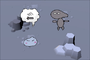 You are (not!) playing a slime that runs through an ever looping dungeon. The slime is choosing by itself what it is doing, randomly, depending on its mood (bottom left).